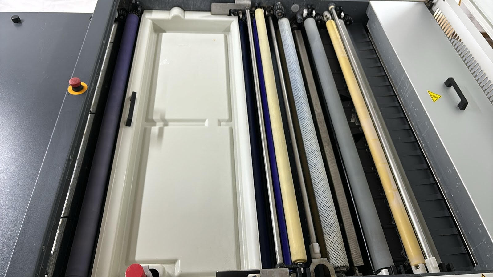 Автоматизиран контрол и настройки чрез непрекъснато проследяване нивата на проявител, вода и гума
